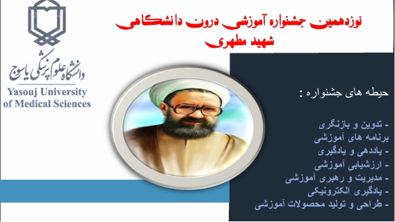 با توجه به برگزاری نوزدهمین جشنواره شهید مطهری ، خواهشمند است به اطلاع اعضا هیئت علمی آن دانشکده رسانده شود ، فرآیندهای خود را جهت ارائه در جشنواره درون دانشگاهی شهید مطهری تا 30 آذر به آدرس ذیل ارسال فرمایند .اعضا هیئت علمی در صورت نیاز می تواندد با آقای دکتر داریوش دیده دار عضو هیئت علمی مرکز مطالعات و توسعه پزشکی سوالات خود را مطرح فرمایند .